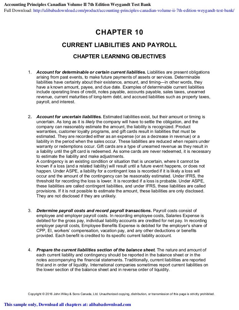 Accounting Principles Canadian Volume Ii 7th Edition Weygandt Test Ba