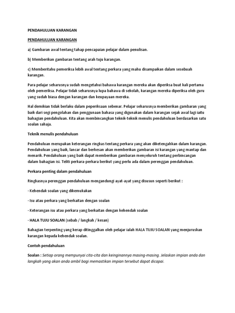 Contoh Pendahuluan Karangan Pdf